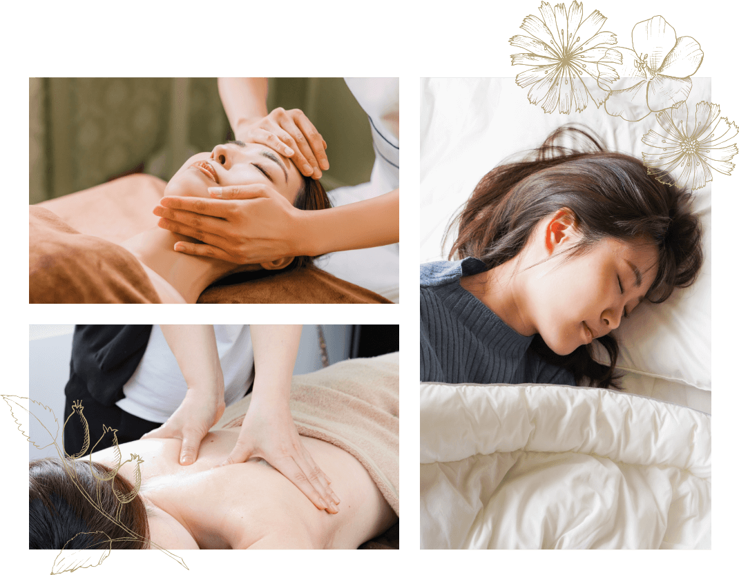 頭・背中・腸などを整え、自律神経のバランスを調整。思考をOFFにし、深い呼吸や眠りへと導く整体です。