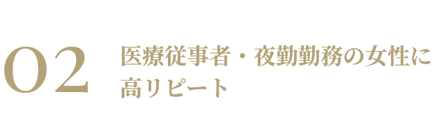交代勤務や夜勤で生活が不規則な、医療従事者や働く女性に多くご利用いただいており、リピート率も高く支持されています。