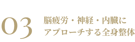 丁寧なヒアリングから不調の原因を見極め、頭・神経・内臓まで整える施術で深い回復を促します。